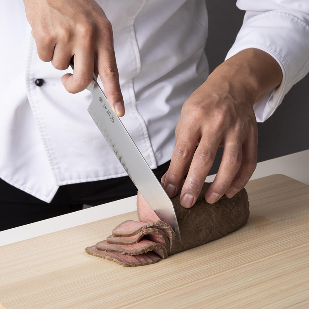 刺身やローストビーフなどの崩れやすい食材も、断面まで美しく仕上げることができます。