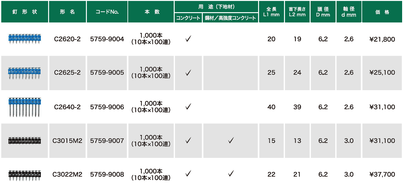 19㎜ランナーへの打ち込み可能、スリムで長い先端形状