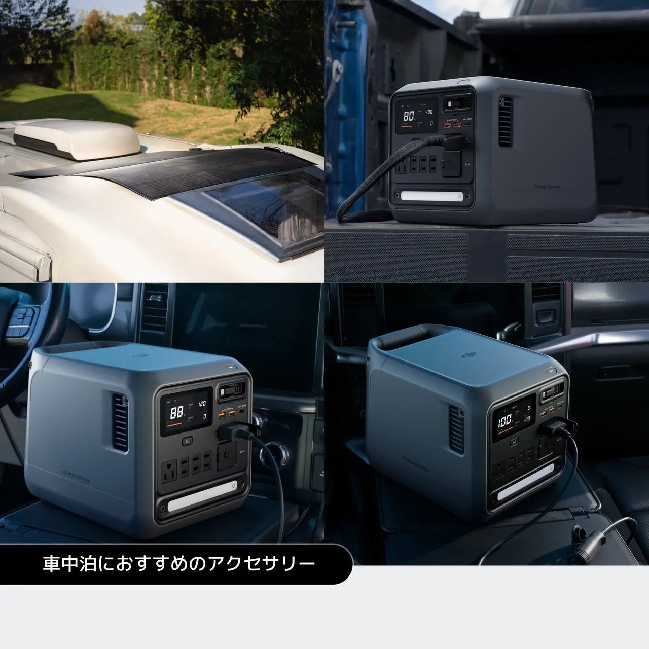 家庭用電源、車内電源、太陽光発電