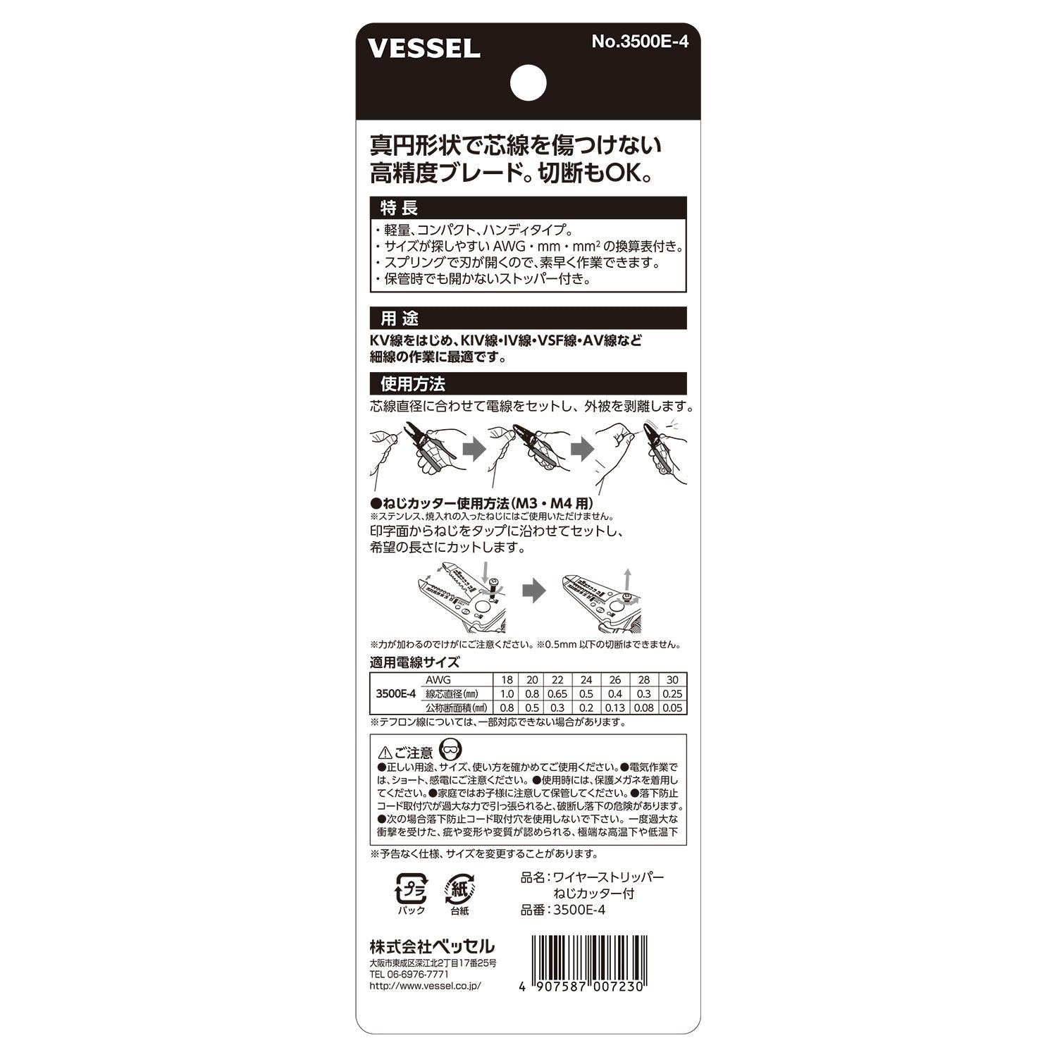 ■ワイヤーストリッパーねじカッター付 No.3500E-4(単線・より線用)