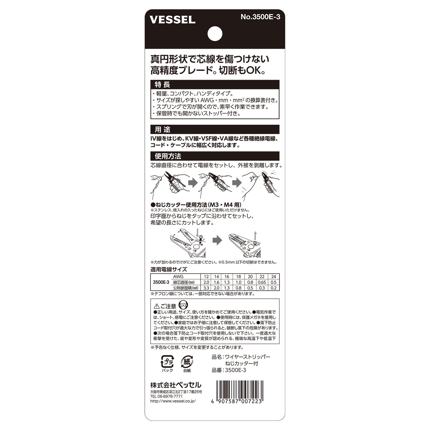 ■ワイヤーストリッパーねじカッター付 No.3500E-3(単線・より線用)