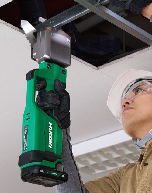 業界初の電動式18VコードレスCチャンネルカッタです。片手操作ができる為、Cチャンネルを保持しながら切断が可能。スイッチを押すだけで、狭い場所でも楽な切断ができます。